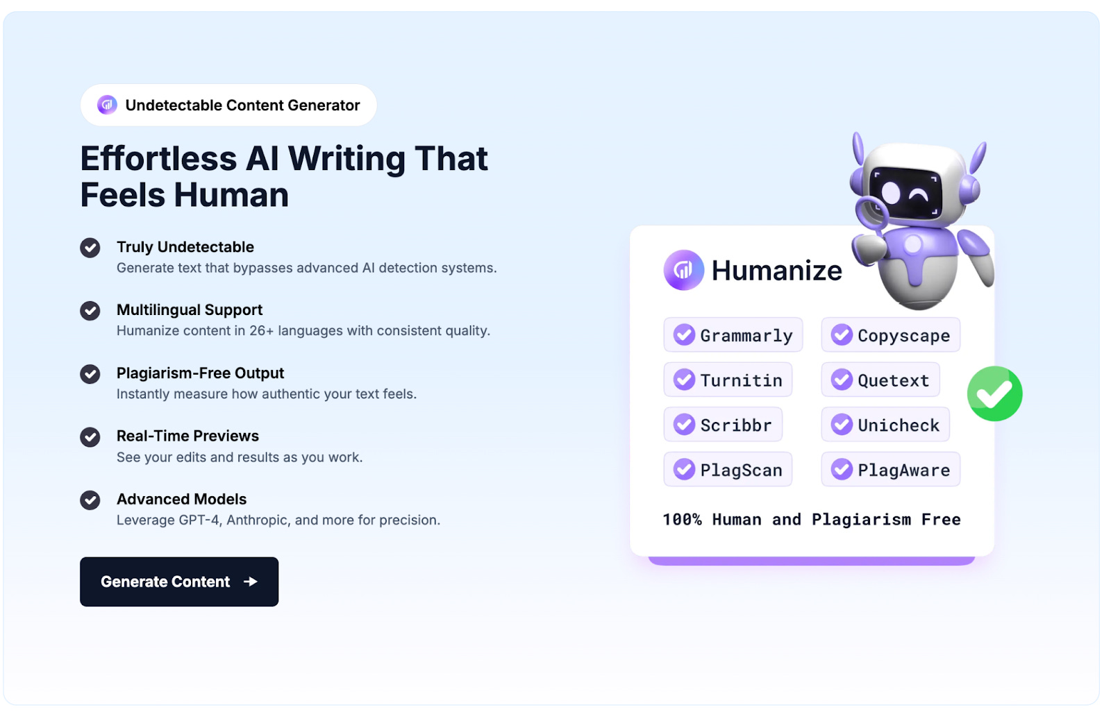 Pick a tool (e.g., blog generator, humanizer, or paraphraser)