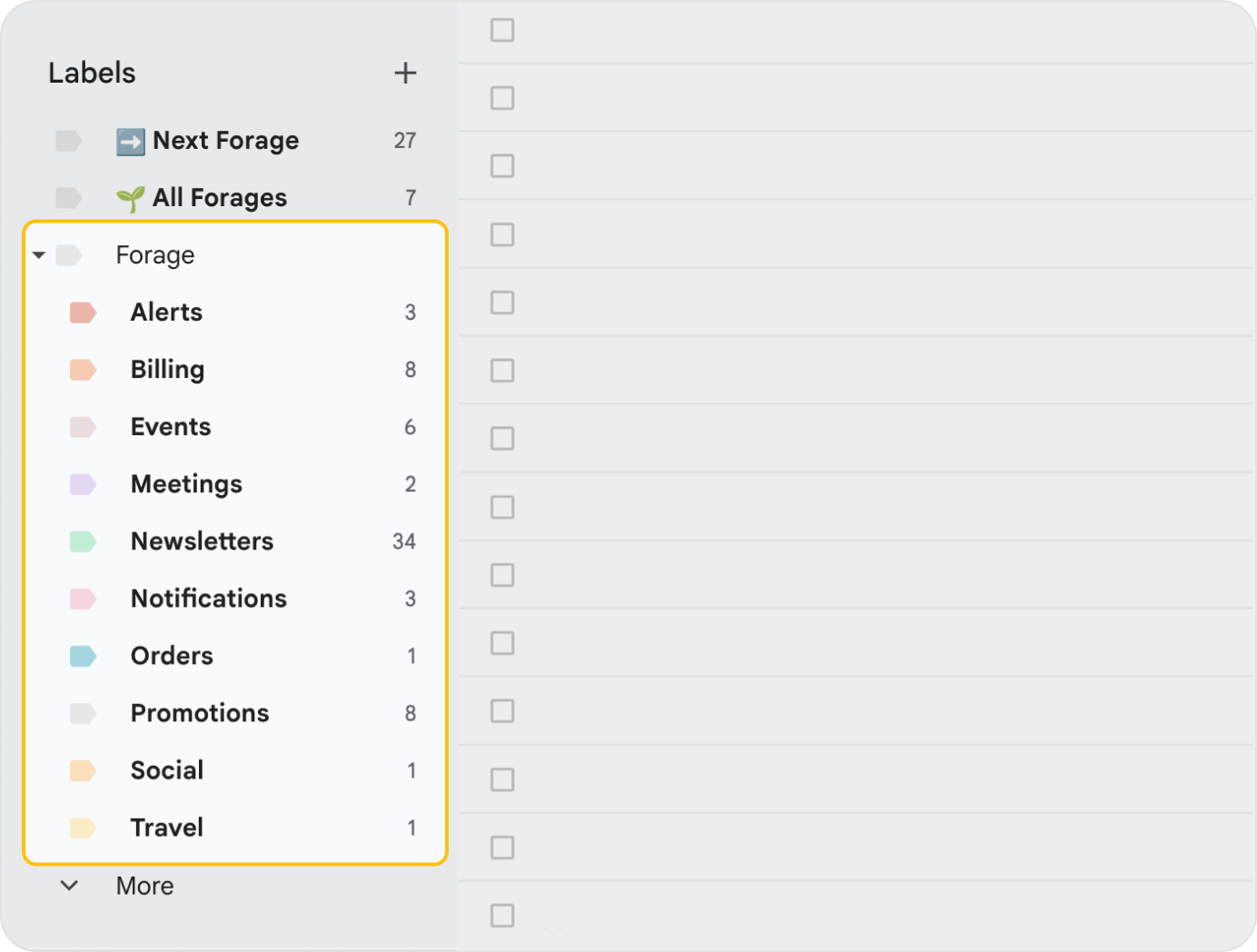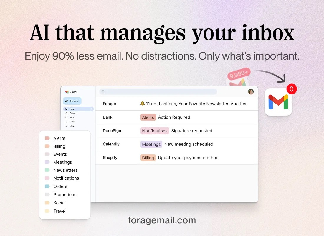 Forage works differently. It automatically checks every incoming email the moment it hits your inbox. Priority messages (from humans, clients, or time-sensitive sources) stay visible. Everything else—newsletters, promos, updates – gets auto-labeled and bundled into a clean daily summary.