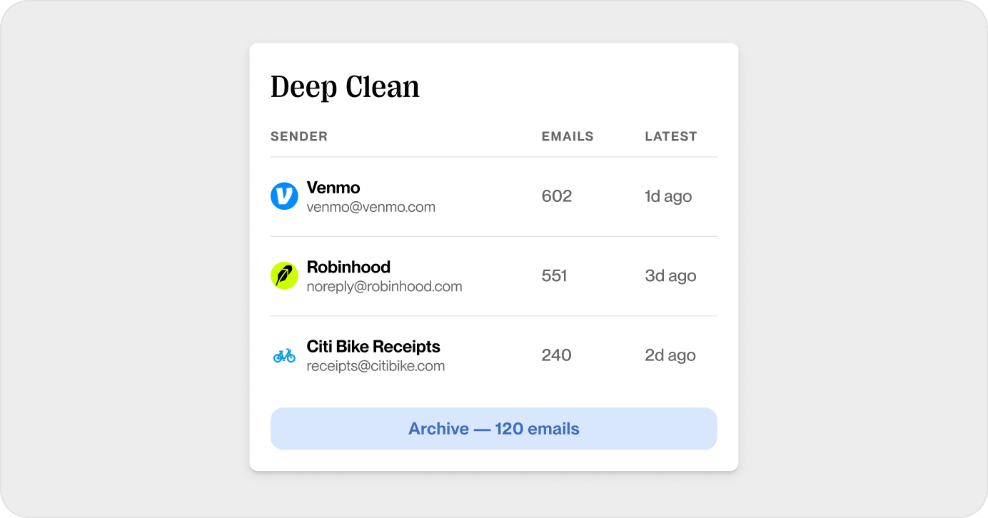 Run a deep clean to mass unsubscribe and remove inbox clutter