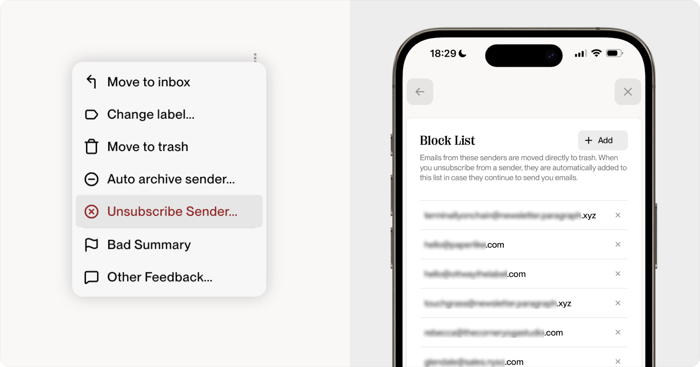 Feel in control – block, unsubscribe, and deep clean in a few clicks