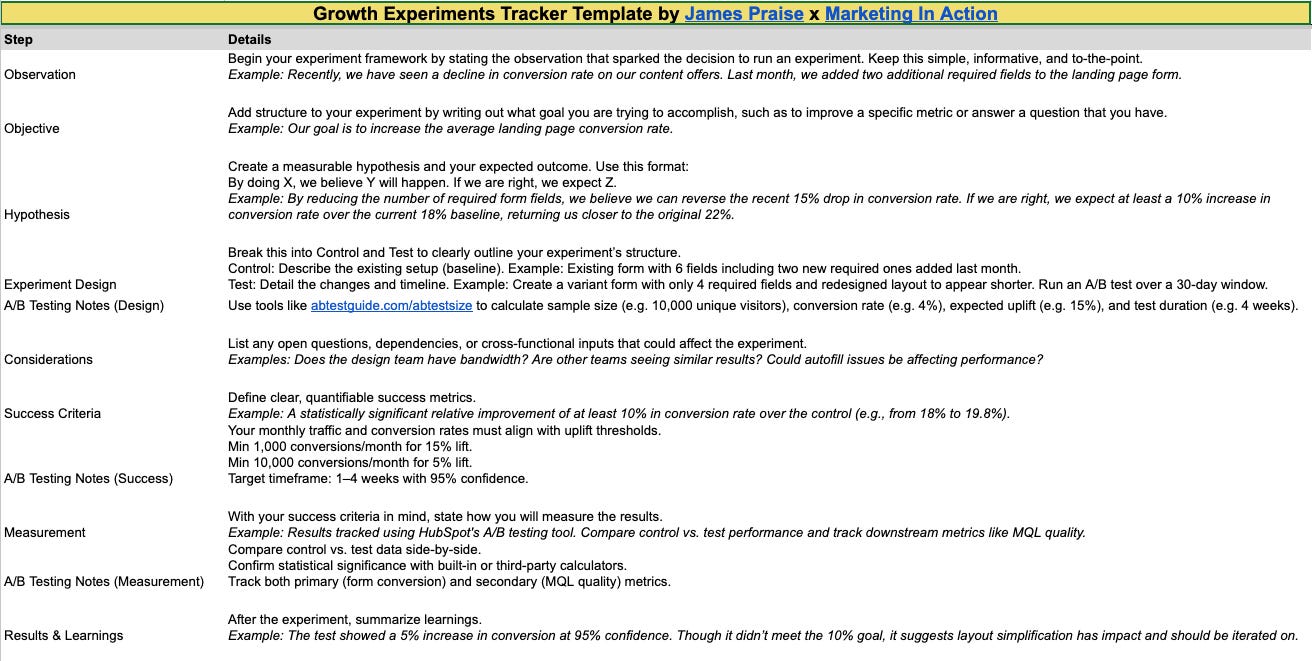 The 8-step Growth Experiment Framework gives you a clear process to follow.