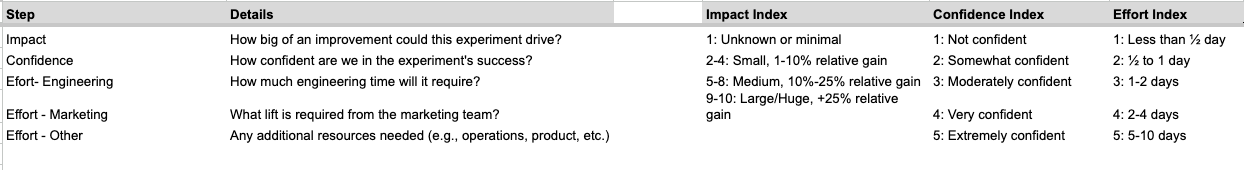 What this gives you is a stack-ranked list of high-impact, low-lift experiments. Instead of chasing the loudest idea, you’re choosing the smartest one. It keeps the team aligned, focused, and efficient.