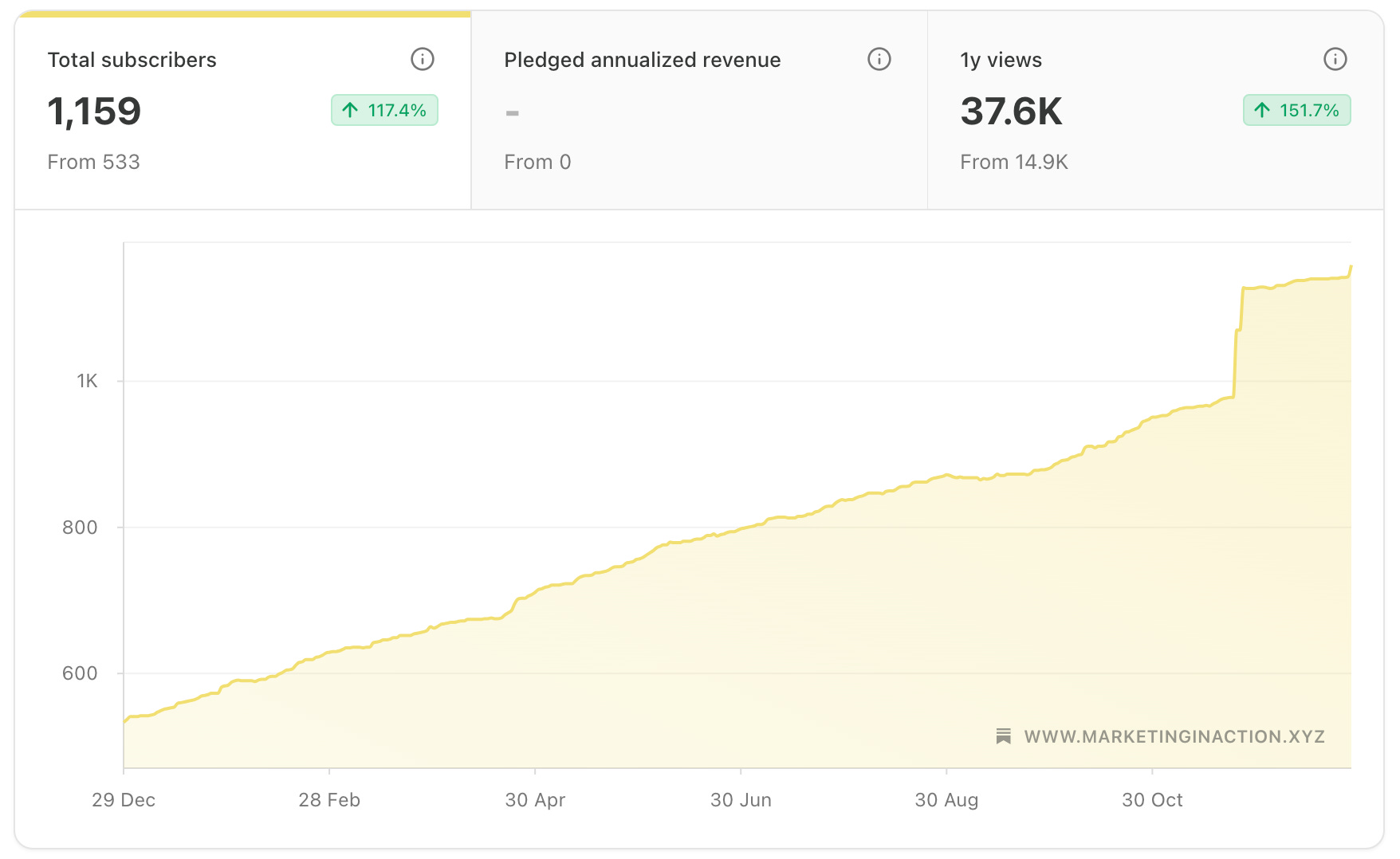 1,000+ active subscribers and 37.6k views.